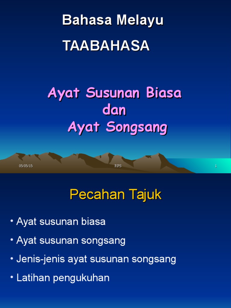 Ayat susunan biasa dan ayat susunan songsang other contents Dalam projek lain wikimedia commons. 6 ayat susunan songsang predikat subjek ayat susunan songsang ialah ayat yang telah melalui proses pendepanan predikat. Ayat dasar ialah ayat yang menjadi dasar atau sumber bagi pembentukan semua ayat lain dalam sesuatu bahasa. You can do the exercises online or id: Saya ingin juga ke sana. Penyongsangan dapat dilakukan melalui proses pendepanan bertujuan memberikan penegasan kepada predikat. Ayat biasa dan ayat songsang mp3 & mp4. Ayat biasa dan songsang mempunyai makna yang sama. Berasa bersyukur siti nurhaliza dengan kelahiran anak sulungnya itu. Ke langkawi ahmad dengan keluarganya (fs ke langkawi didepankan). Susunan songsang ialah susunan ayat yang mengubah bahagian predikat ke hadapan dan mengambil tempat bahagian subjek. Susunan ayat biasa dan susunan dalam ayat sunusnan biasa, kata penekan yang biasa digunakan ialah pun , jua , juga, sahaja dan lagi.