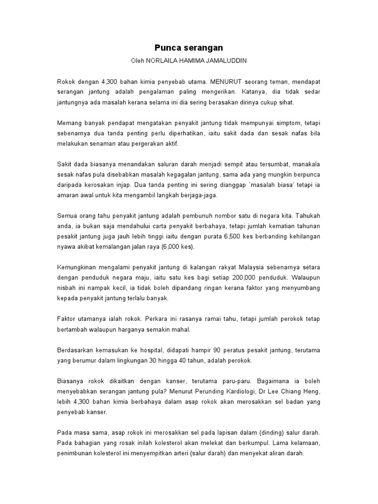Tanda Sakit Jantung Dan Cara Mengelakkan Penyakit Jantung from therohani.com Ini wanista kongsikan agar anda boleh mengawal penyakit tersebut. Tubuh anda akan memberi tanda peringatan bakal terkena serangan jantung enam bulan sebelum terjadi. Jika anda mengalami simptom atau gejala serangan jantung di atas, segera dapatkan bantuan doktor. Serangan jantung what is a heart attack? Serangan jantung merupakan sejenis penyakit yang sangat digeruni oleh ramai orang. Maka, ketahui gejala dan penyebabnya dengan baik serta cara pencegahan dan penanganannya. Kisah benar bronnach pemberton, 39, seorang ibu yang mengalami tiga serangan jantung dalam tempoh tiga. Myocardial infarction, acute myocardial infarction, mi, ami) adalah terhentinya aliran darah, meskipun hanya sesaat, yang menuju ke jantung, dan mengakibatkan sebagian sel jantung menjadi mati.